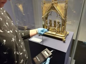 Antes de la salida de las piezas, verifica su estado de conservación, que se revisa y amplía al llegar a la sede de la exposición, durante el montaje, y en el momento del desmontaje y retorno a su lugar de origen en Navarra.